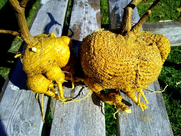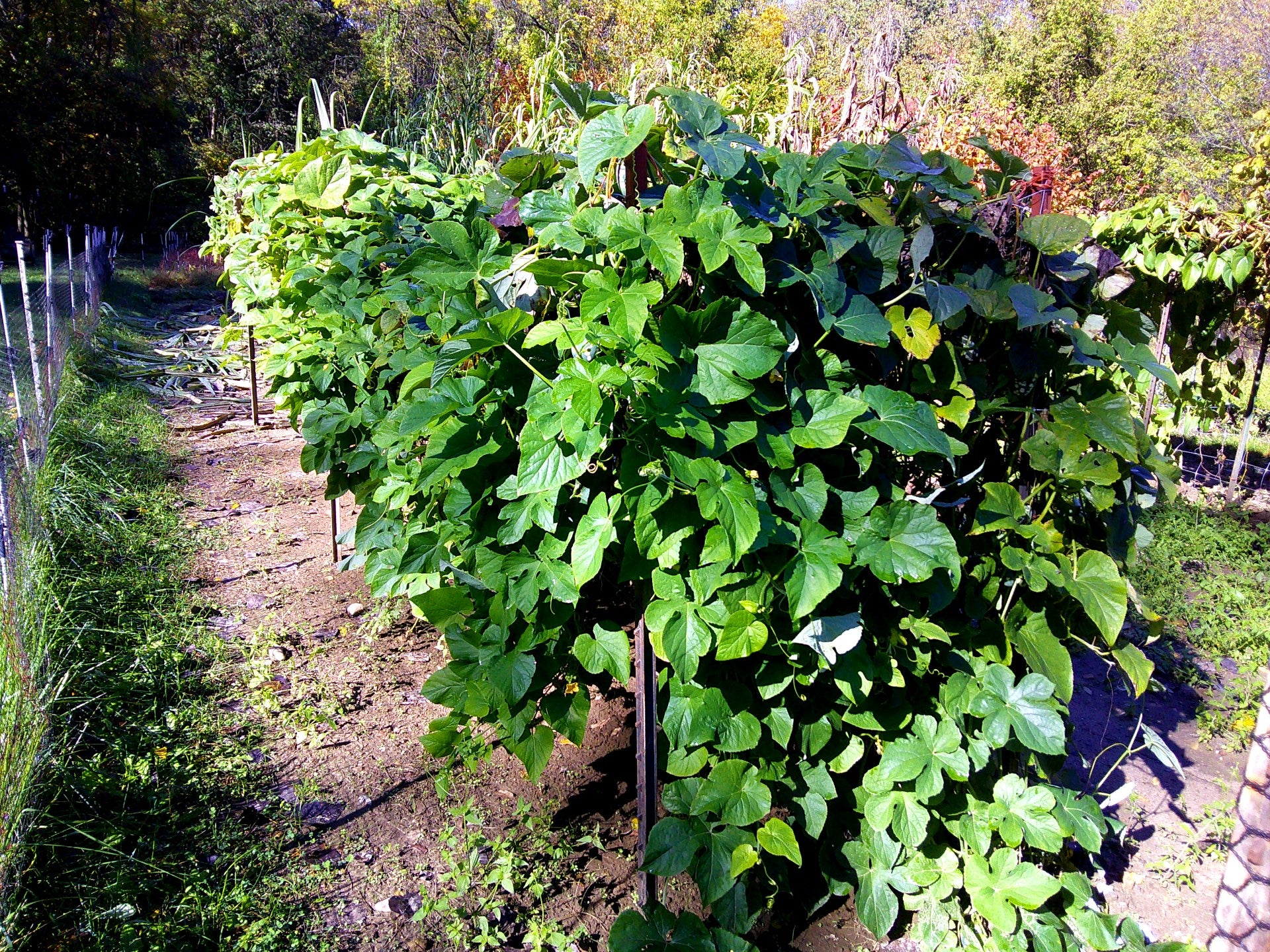 Anchote (Coccinia abyssinica) is a dietary staple for the Wallaga Oromo people of Ethiopia. Grown primarily for its edible roots, although the tender young vine shoots and leaves can be cooked and eaten as well. What I like about this crop is that it produces a starchy tuber from saved seed in 5 months, with no need to overwinter tubers for replanting like potatoes. The flesh is very dense and fiberous. I have tried it boiled, fried and made into starch. The fruits are unusually beautiful but not edible. I start Anchote in late April as a transplant, and then plant into the garden after all danger of frost has passed. This is a vigorous vining plant and needs something to climb on. Anchote is also extremely drought tolerant, but does not mind regular summer rainfall, heat and humidity.