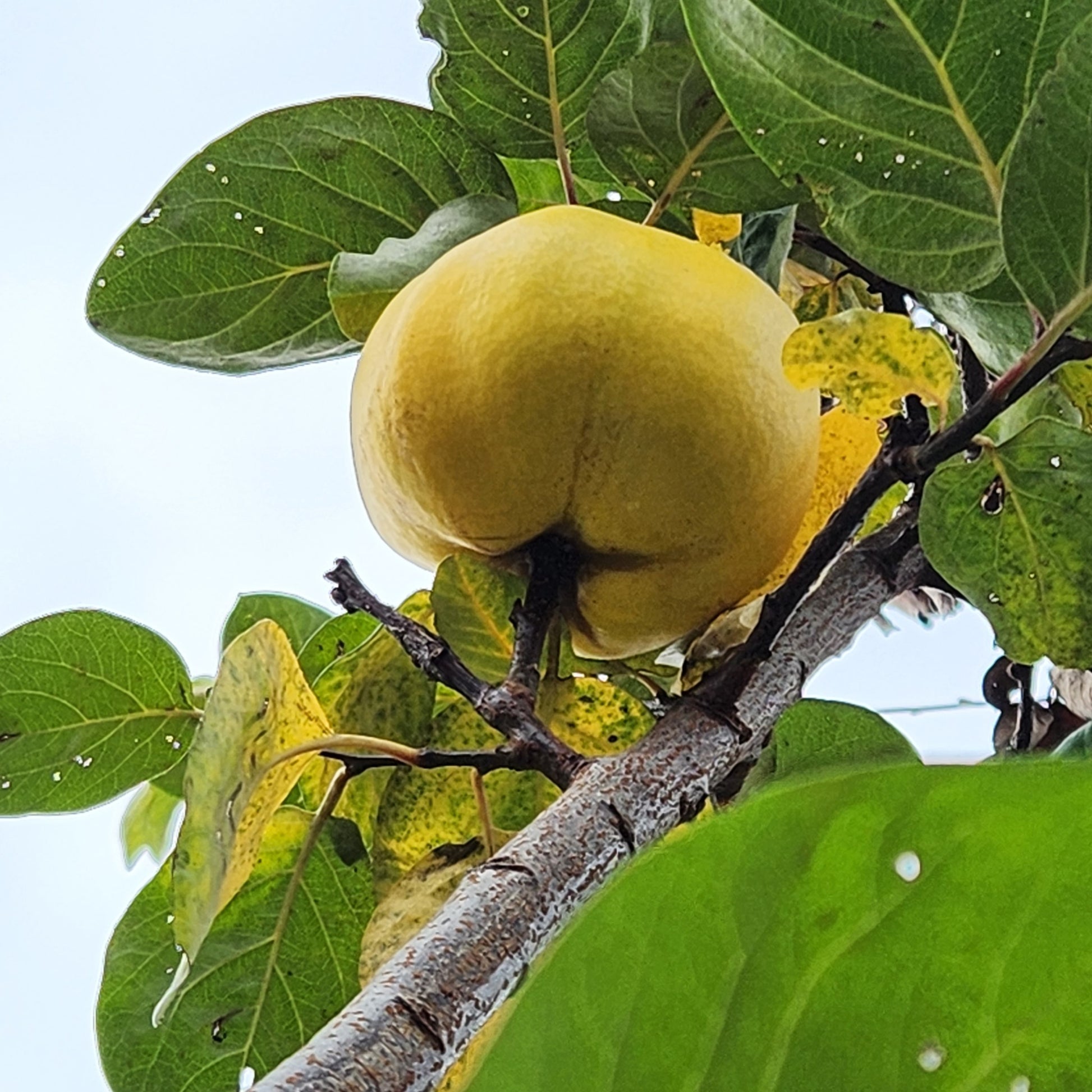 Furrowed pear-like fruits are citrusy and are not usually eaten raw, instead transformed into amazing preserves - Spain's Membrillo is a delightful treat enjoyed with Manchego, while our German friend distills his quince into a wonderfully aromatic schnapps.