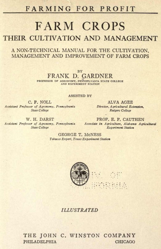 Full Title: Farming for Profit Farm Crops Their Cultivation and Management - A Non-technical Manual for the Cultivation, Management, and Improvement of Farm Crops by Frank Gardener et al; 1916