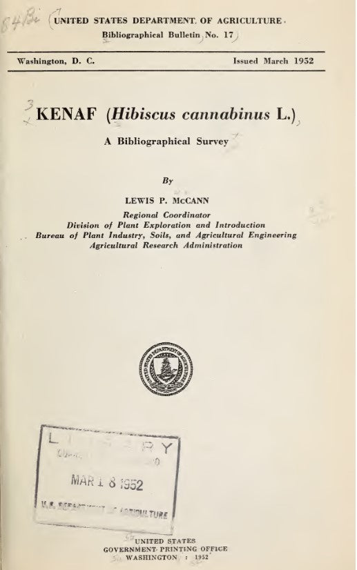 Fiber (1952) Kenaf (H. c. L.) A Bibliographical Survey