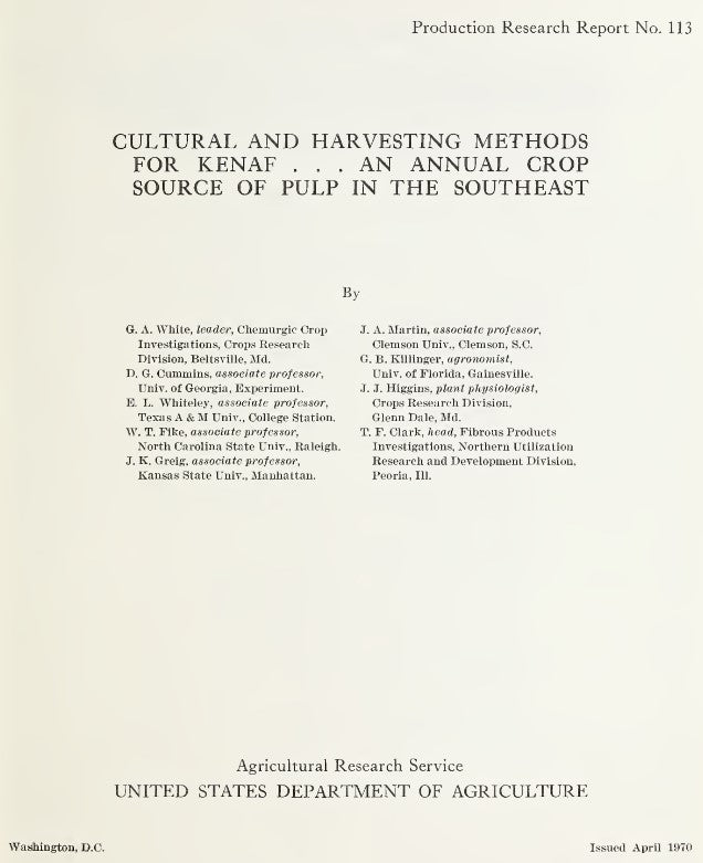 Fiber (1970) Cultural and Harvesting Methods for Kenaf