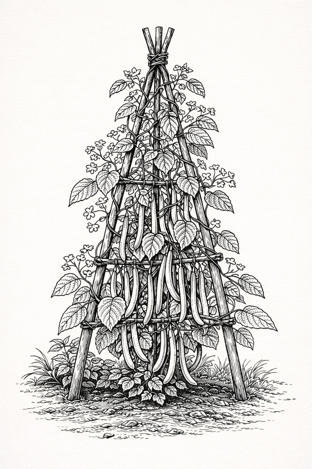 Vigorous climbers, the Half-white Sugar Bean is very productive for us. While tasty as snaps, I grow it primarily for its cheery plump dry beans that do have a hint of sweetness.