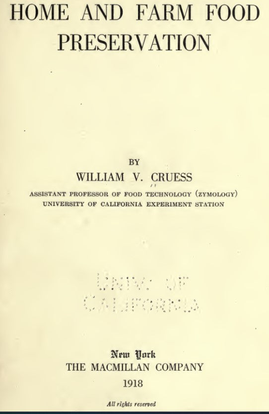 By William V. Cruess, Assistant Professor of Food Technology (Zymology), University of California Experiment Station; 1918