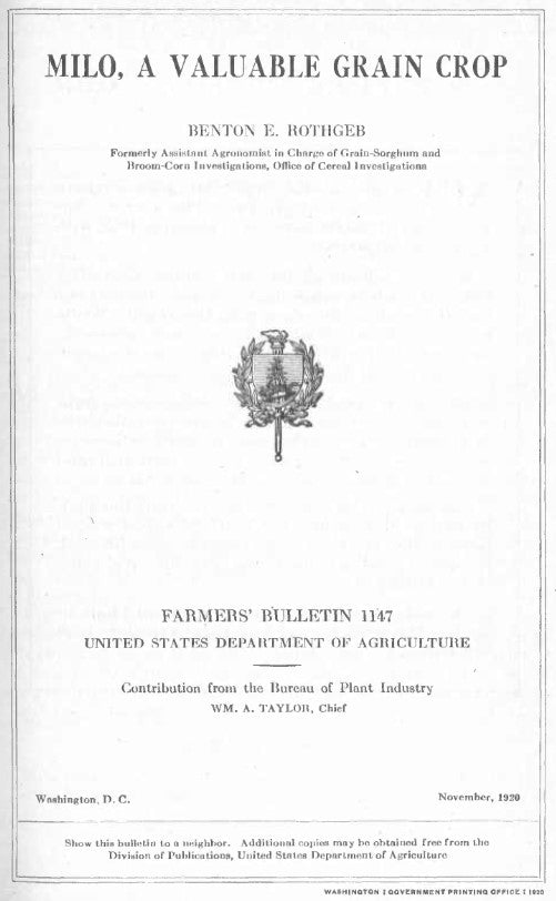 Sorghum (1920) Milo - A Valuable Grain Crop