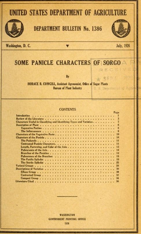 Sorghum (1926) Some Panicle Characters of Sorgo