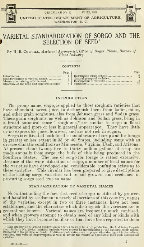 Sorghum (1929) Varietal Standardization of Sorgo and the Selection of Seed