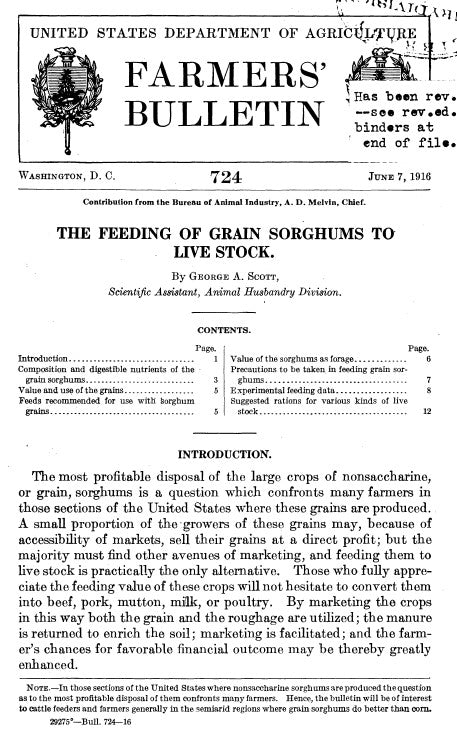 Sorghum (1916) Feeding of Grain Sorghums to Livestock
