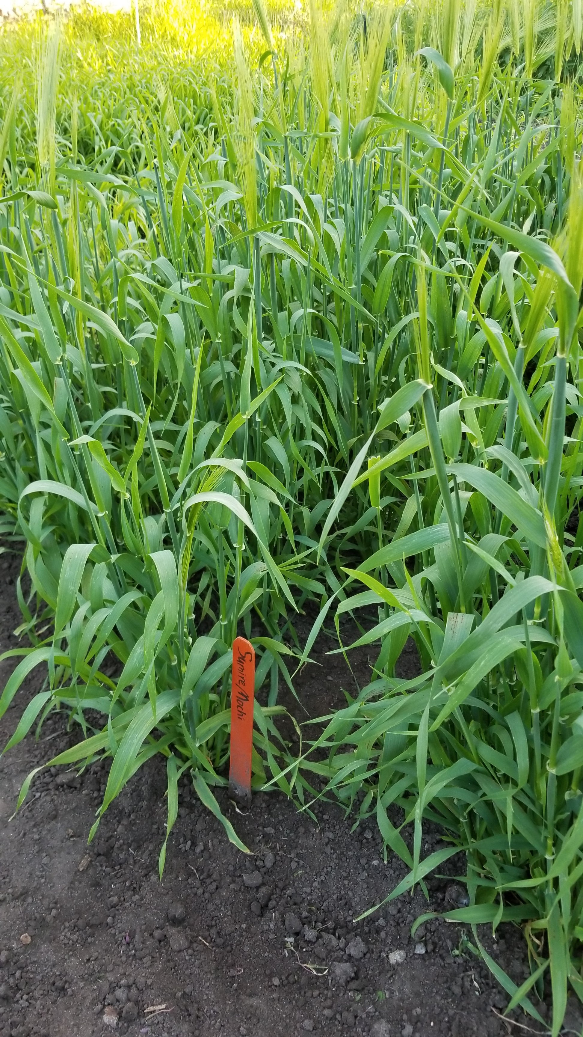Considered a glutinous barley, Sumire Mochi is a Japanese 6-row barley that is spring planted. The heads are easy to thresh by hand but some additional, minimal hand work is needed to pick clean. Plants tiller vigorously.