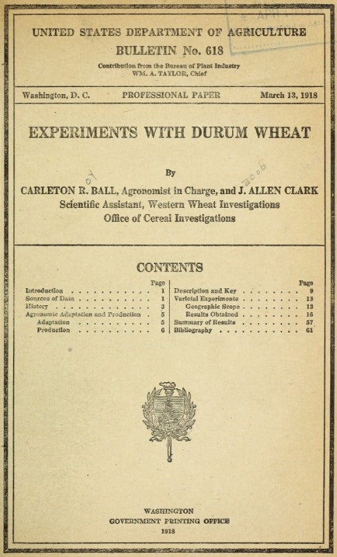 USDA Farmers' Bulletin No. 618 Professional Paper by Carleton R. Ball and J. Allen Clark; 1918
