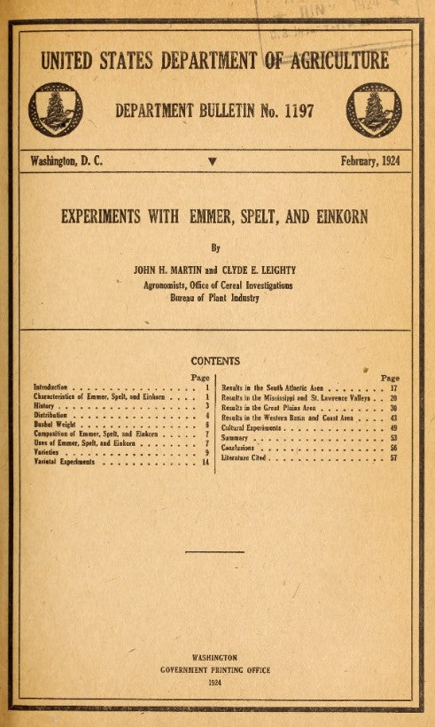 Wheat (1924) Experiments with Emmer, Spelt, and Einkorn